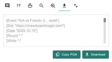 - ◦ Copy PGN: Copies the full PGN of the current line or branch.