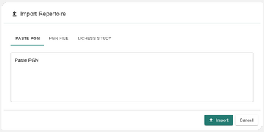 - ◦ Import Repertoire: Import a repertoire from a PGN file (pasted or uploaded), or directly from a public Lichess Study