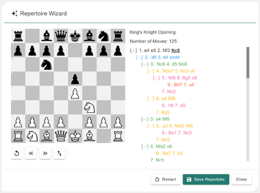 You’ll see a live preview showing how many moves will be generated. Click Build Repertoire to start the wizard. Once complete, your new repertoire will appear as a fully interactive move tree.