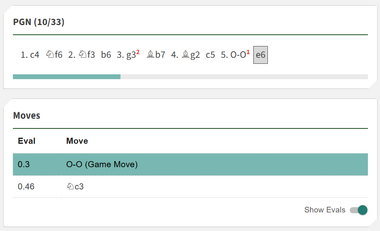 - ◦ Moves Card: Shows the engine evaluation for the move you just played, allowing you to see how your move compares to the original game continuation. This card can be disabled if you prefer not to see evaluations during play